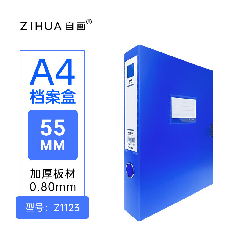 自画 Z1123塑料文件盒档案盒加厚资料盒 财务凭证考试收纳 A4 1只 55mm