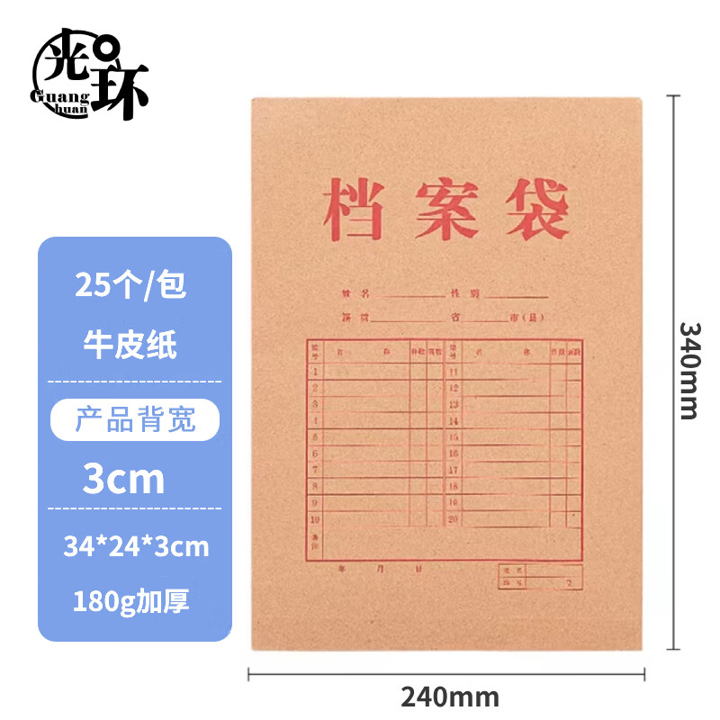 光环(GuangHuan)牛皮纸档案袋180克加厚文件袋资料袋 34*24*3cm 25个/包 GH3424-3